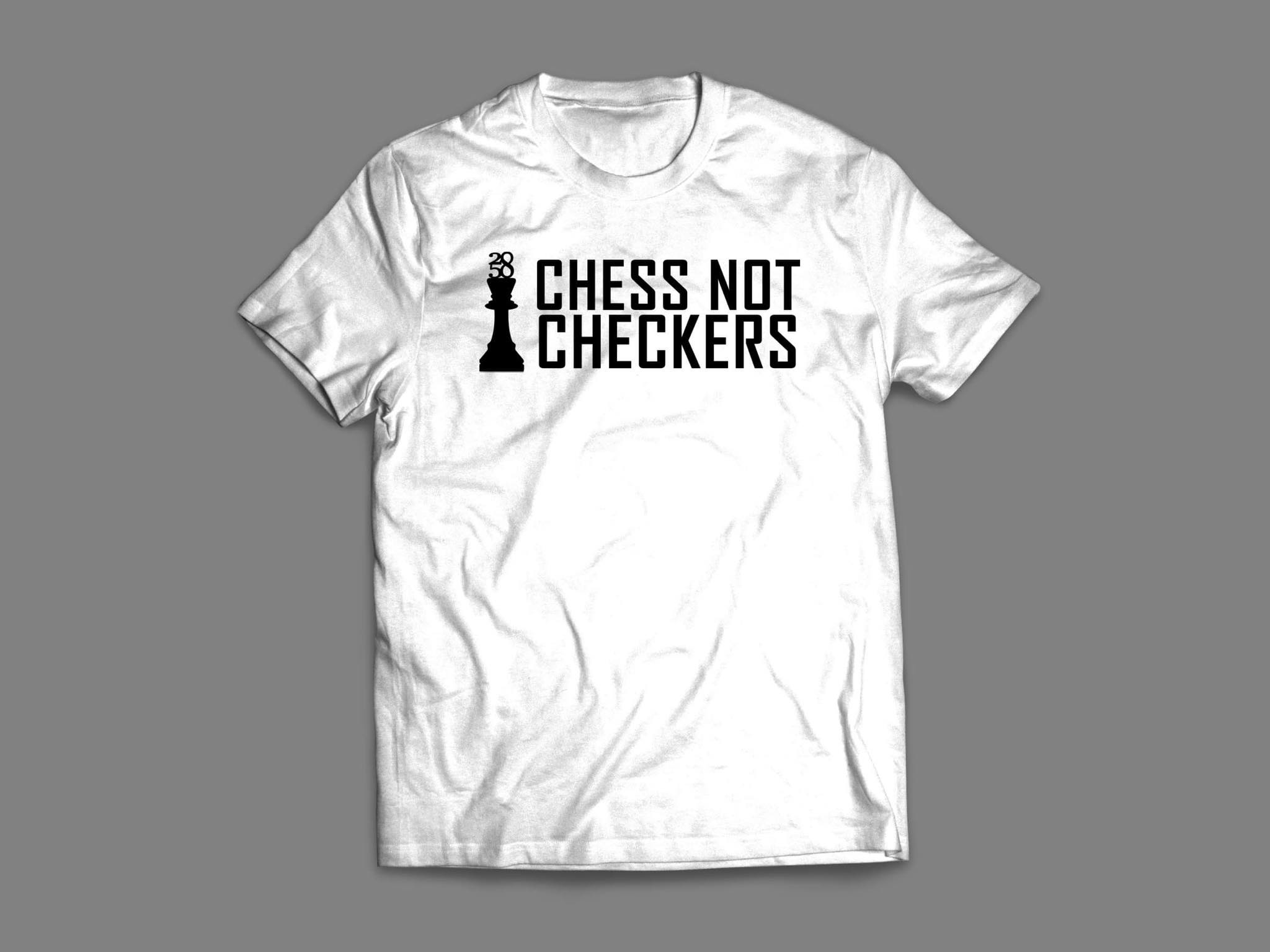 Elevate your strategic mindset with the Chess Not Checkers Tee. This sleek black t-shirt features a vibrant and colorful graphic that boldly declares “Chess Not Checkers,” alongside a striking chess king icon with the iconic “258” embedded within. Perfect for those who live life with strategy and precision, this tee captures the essence of making calculated moves.